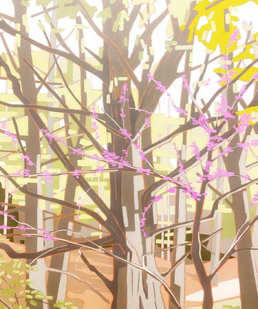 “I am inspired by landscapes and flora. They contain mysteries that ask to be uncovered, explored, enhanced—and sometimes not to be trifled with at all. I work from photos, drawings, and the memories I gather. Communicating ideas and feelings about the colors, textures, patterns and surfaces of these places is the soul of my work.”