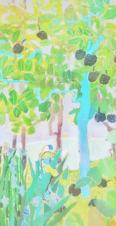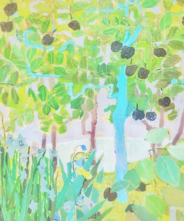 “My art celebrates home, habitat, and the everyday items we cherish within those spaces. It’s in our homes that we gather into arms reach the things and people we know to be most beautiful and necessary to our life story. The compositions, style, and colors of my abstracted still life paintings are inspired by a long-held affection for interior decorating, historic architecture, old country villages, and early 20th century art.”