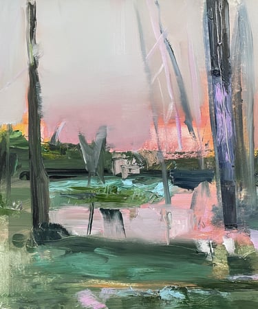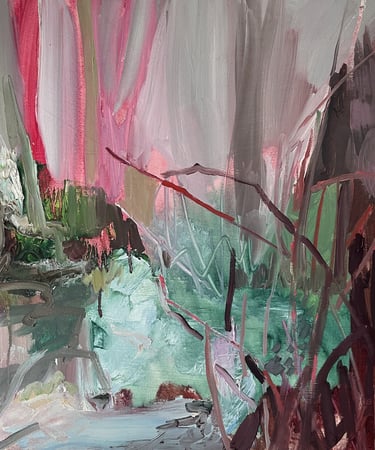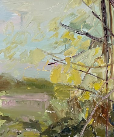 My work explores the emotional and psychological attachments created by daily interactions with the landscape. The paintings are tangible collections of moments of stillness among movement. Careful observations and personal narratives emerge through calligraphic marks made with the sense of immediacy and poignance of diary-like entries. Meditations on window views, lakeshore walks, the burst of blooms, the hush of winter, murmurings of green populate the canvases. The work explores falling into rhythms of nature and noticing that, in the exchange between person and place, there is the development of a deep urgency to capture, understand, hold on, and let evolve.