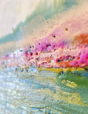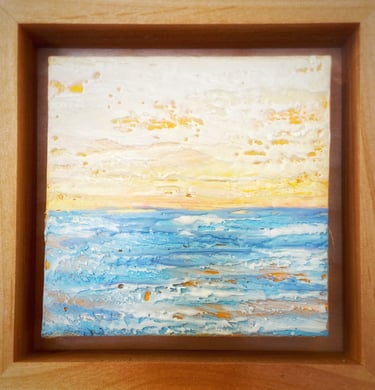 "Working with encaustics allows for the unexpected. There are opinions which I lend to my work through color and stroke, but in the end, the painting creates itself. It is an ongoing learning process for me. Allowing the wax to do what it will, building layer upon layer, watching it bring some points of detail to the surface while quieting other areas down. It’s a quiet space. A place where I can engage most of my senses. The scent of the beeswax, the colors that shift one way or the other when it moves from liquid to solid, the sound of the flame used to fuse each layer into one. I love every aspect of this ever-evolving medium which is as expansive as the landscapes it represents… continually urging me to set down my expectations and be present for what is about to unfold."