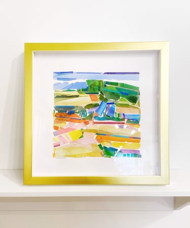 “Color wets my appetite to paint. The light and color cast over landscapes inspires me. This inspiration also comes from childhood memories spent in the outdoors on lakes, beaches and farms. I simplify the composition into broad swaths of intensified color. This I believe, results in abstractions of nature and gives the landscape distinctive character. I call it composed landscapes”.